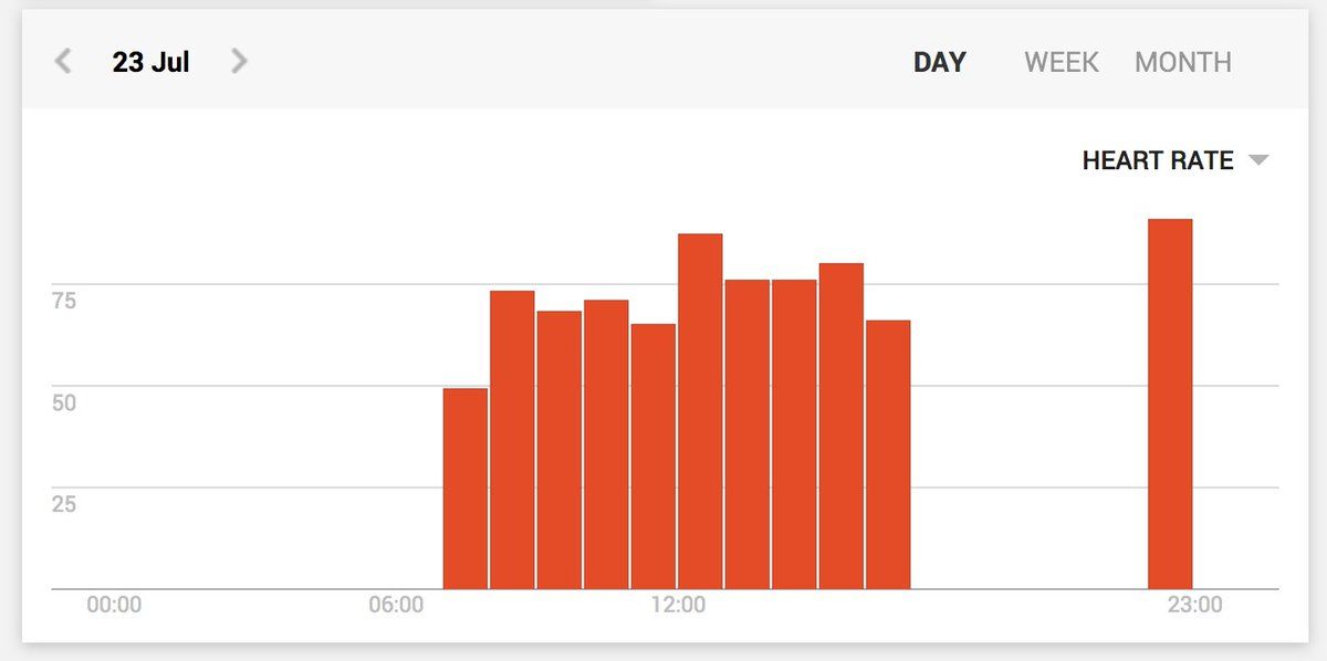 Some progress on importing Pebble heart rate to Google Fit (with the hope that it'll then trickle into other apps). This shot shows web interface to Google Fit with data sourced from my watch. Problem is: doesn't appear on the phone…
