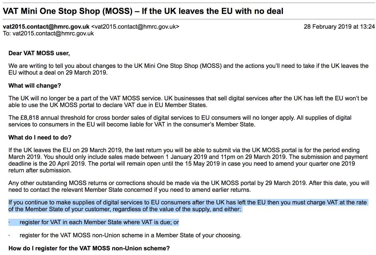 I can't find an online version of this email from the VAT MOSS office, but fuck me, "register for VAT in each Member State where VAT is due". I'm really really unsure what t do. Giving serious thought to moving my business out of the UK. Just no idea about he logistics.