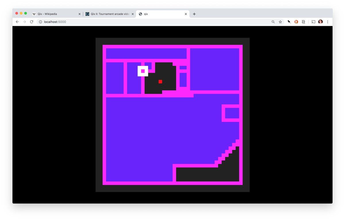 Progress from 120 minutes (plus change) from my twitch sessions in creating a QIX clone.