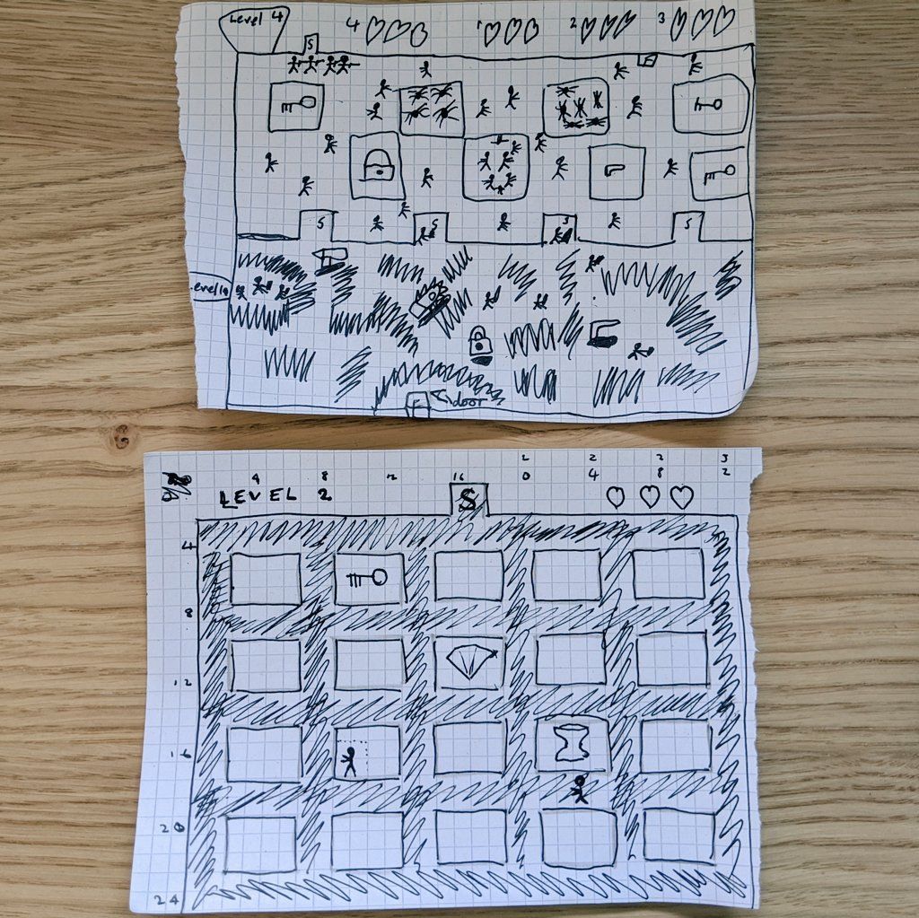 Bottom: my attempt to rip off Oh Mummy (and port to NextBASIC). Top: my boy's version where baddies and spiders and canons and OH MY GOD THIS GAME IS SO STRESSFUL 😱🧟♂️🧟