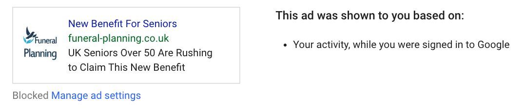 : Again, Google? Somewhat poor taste for someone your algorithms presumably know is at high risk.