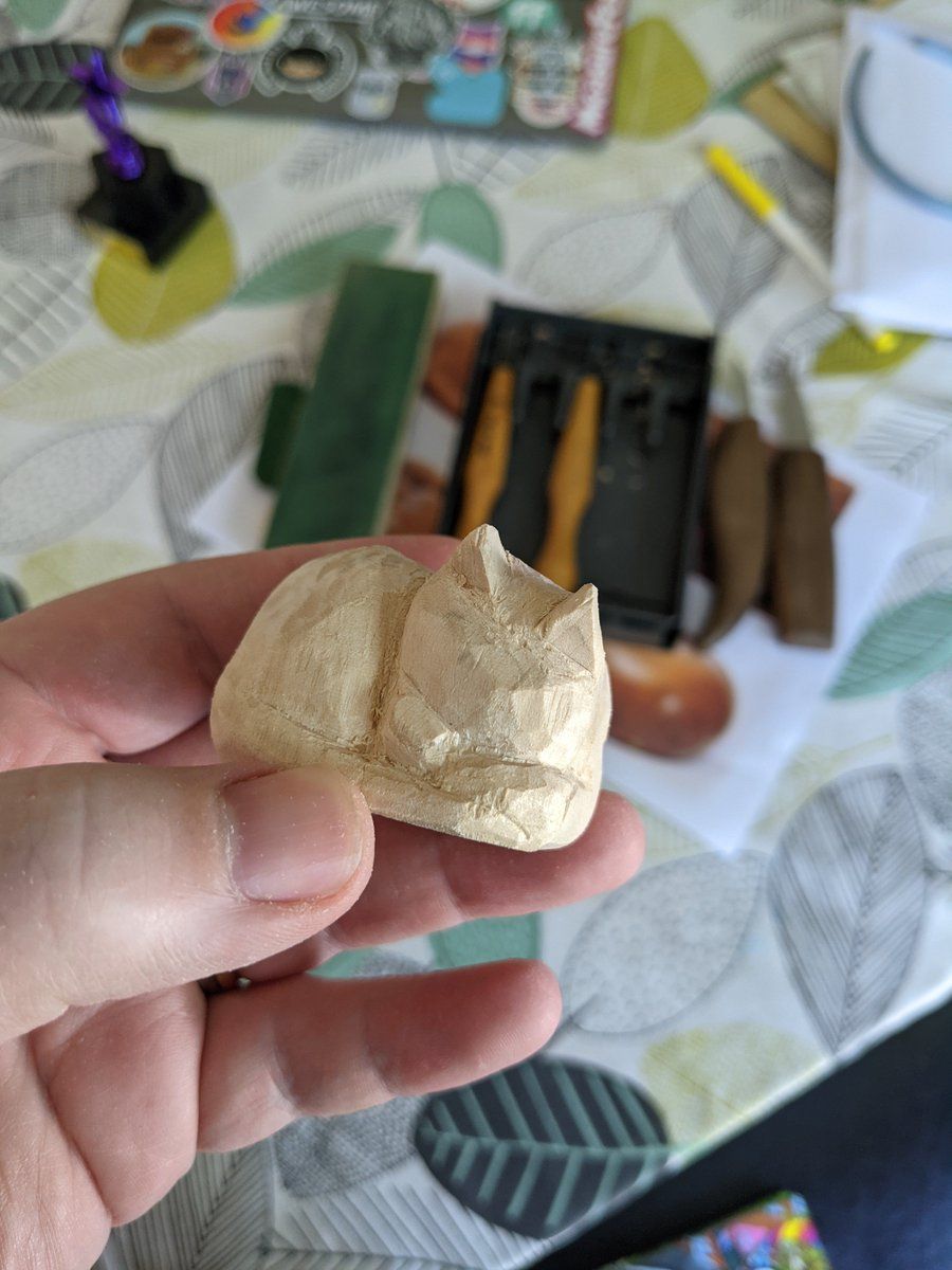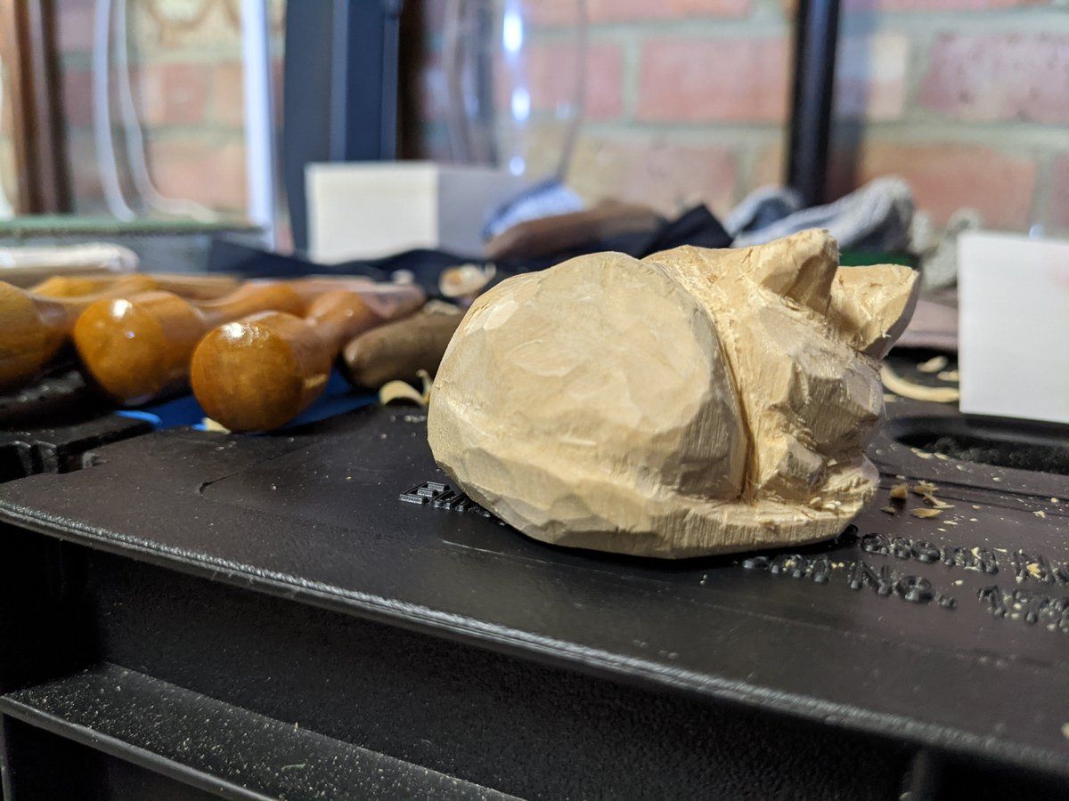 Far from finished, and I'm not feeling super confident about the ears and face, but making some good progress for a few hours with the knives.