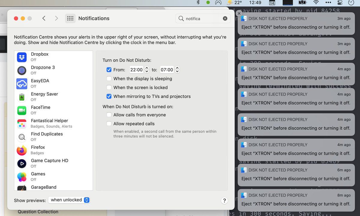 Anyone know how to prevent these "disc ejected" notifications? They don't group, the hover button UX on macOS is for shit - so horribly to clear them one at a time. Finder isn't listed in notifications… (also… fucking Apple…)