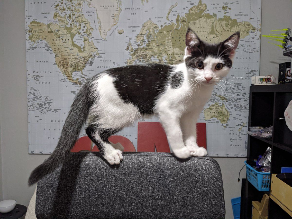 I wanted to, but it wouldn't have done it justice. Here's a consolidation pic of Disco deciding that he wants to explore *this* part of my chair whilst I work.