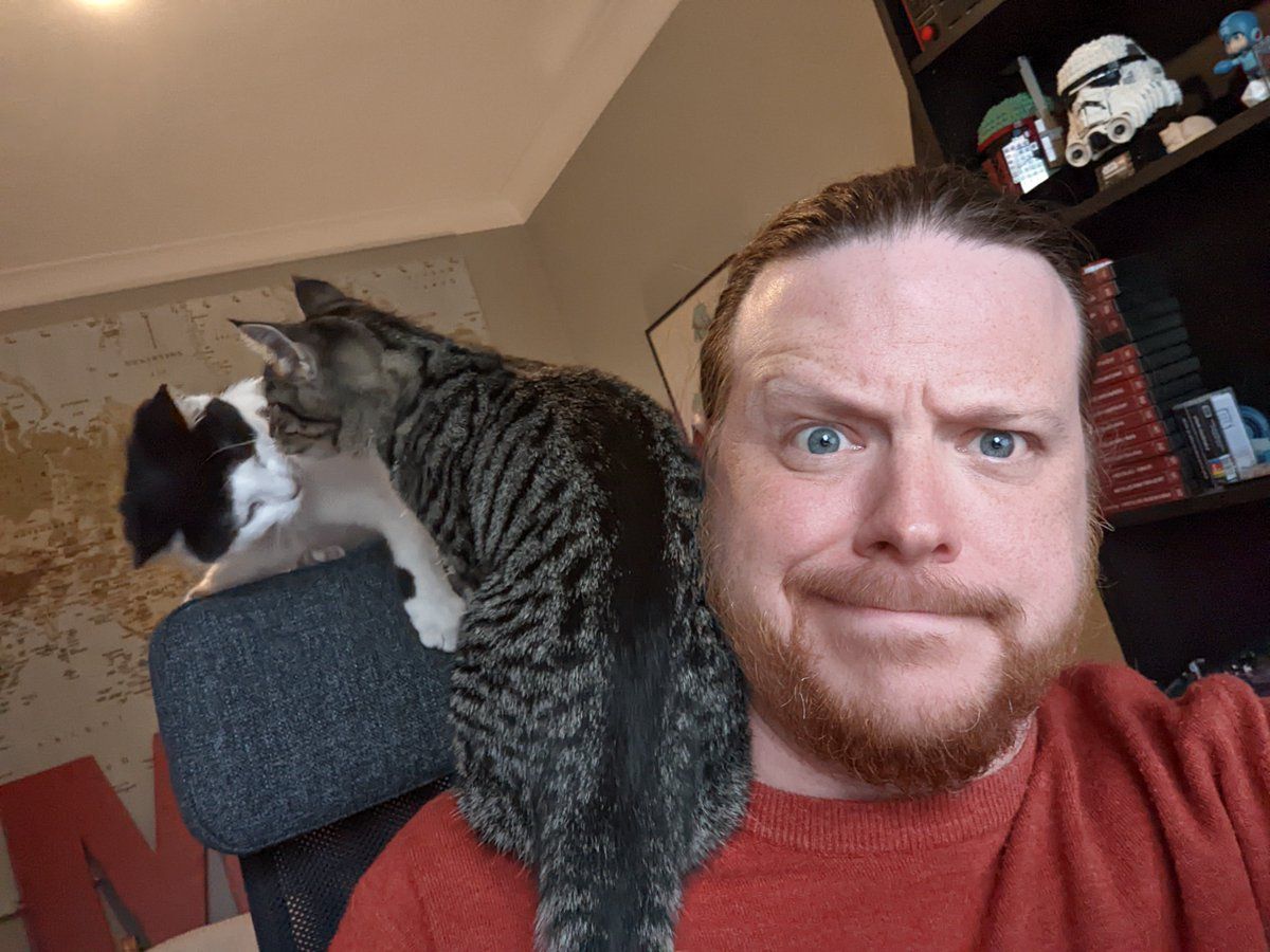 I feel like if he just sat on my lap it might be easier to work...