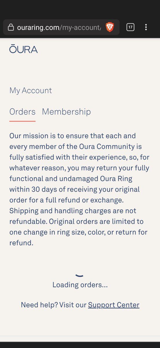 ouraring Nope, didn't magically resolve. Your orders page is currently broken - and I've sent a screenshot of the errors from the JavaScript to support. I'm left with this in multiple browsers with and without incognito (ie. not plugins etc). It never loads because it's broken.