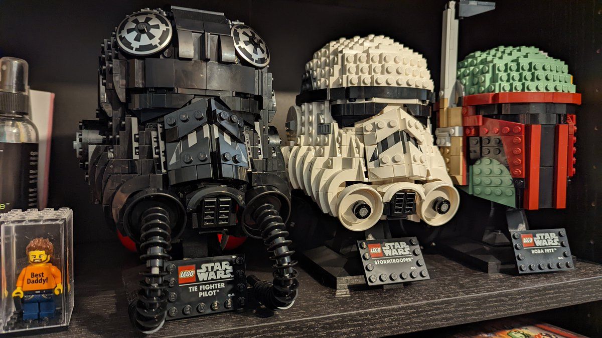 Whilst the kids were off visiting their Nanna, I was busy building my Tie Fighter pilot (which I somehow bought myself back in June and hadn't made it yet!). I'm pretty happy with those decapitated heads on my shelf.