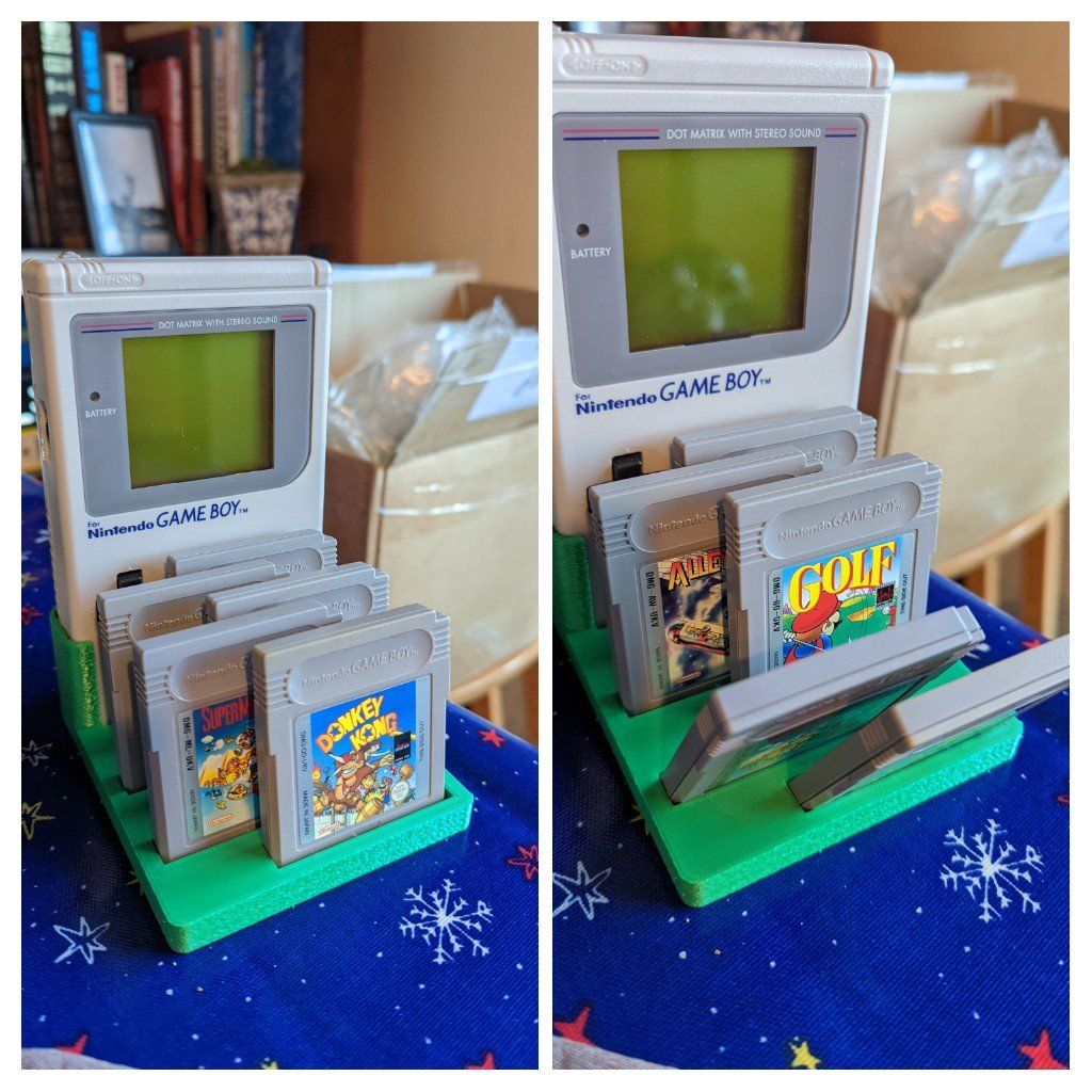 Made myself a little Gameboy and game stand - particularly chuffed with the tilting mechanism.
