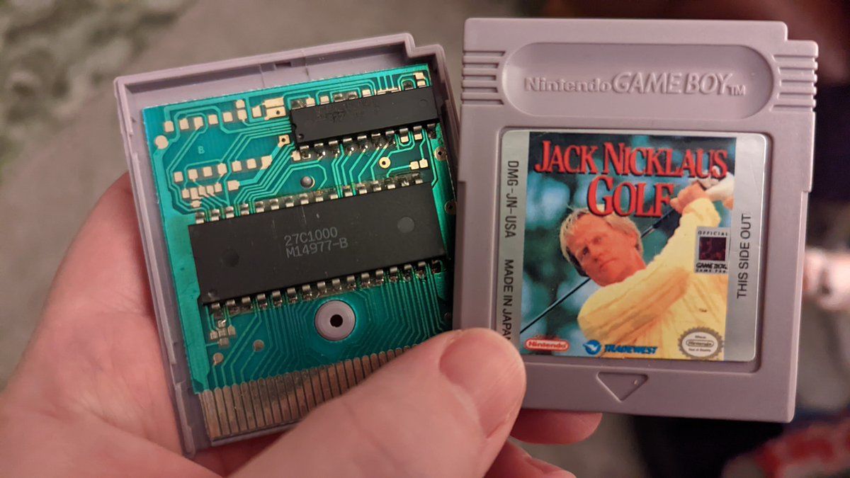So this is what a "fake" Gameboy game looks like on the inside. The sticker print was a little suspect, and the screw seemed an odd size, but yeah, this doesn't resemble Gameboy game paks at all.