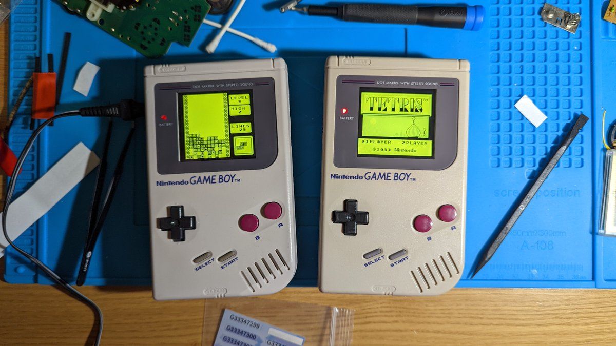Second one has a bit more character…aka, couple of small nicks and bit of yellowing, but still not bad I think. They do need capacitors added to deal with hissing caused by adding IPS screens.