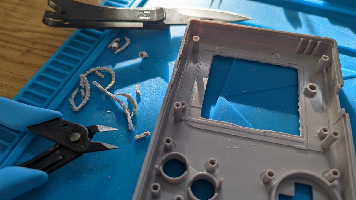 The "making room" process always makes me nervous. Can't slip with this knife (plus feels like I'm defacing a Gameboy but cutting it, but…The Greater Good…)