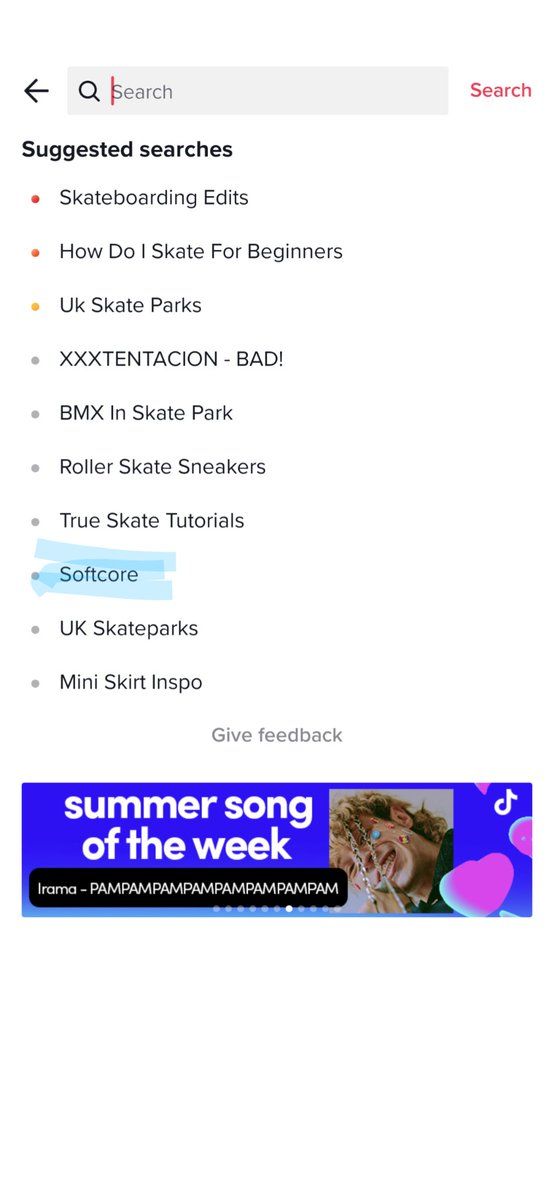 1. I installed tiktok to try to find a video about a skateboard made of candy (to show the boy), but also know this is on the kids horizon. Is this normal? I the video was the first thing on the screen (as she bounced) and after finding the clip, "softcore" is a recommended search.