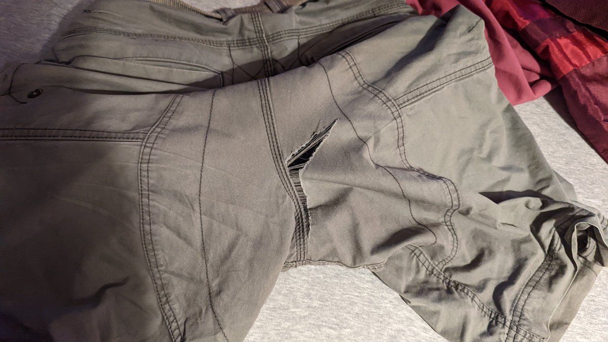 Retiring these shorts after a decade of wear, particularly now they have a lightning bolt exit wound as if I farted out Pikachu. (Yes, my tweets are this dull, yes, also, head is less dark today)