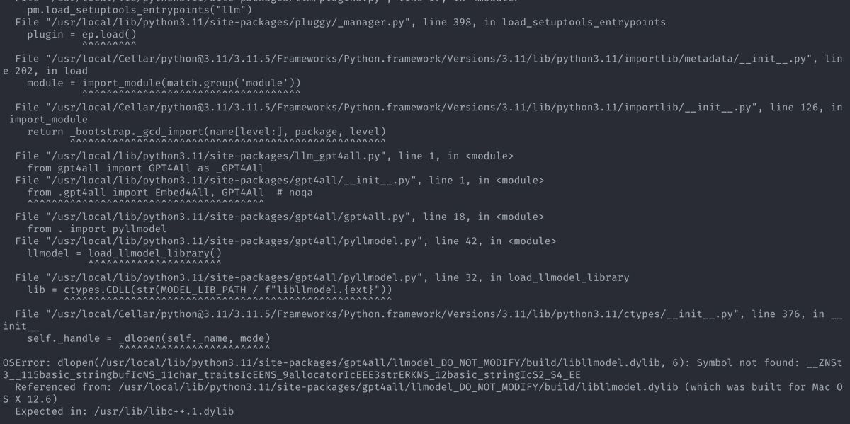 simonw sod, brew install llm landed "your MacOS is too old - 11" - I hate upgrading macos, it's such an ache! Then installed via pip install… now got errors. Worth filing on github? (or am I just a magnet for bugs with my Bad Tech™️