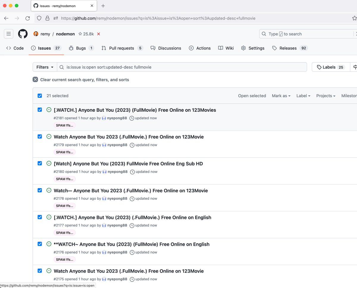 ? I'd imagine "closing" these issues would still mean it's good for SEO juice (which I can only assume is what the spammer was after).