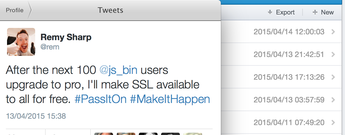 2d ago I posted saying I'd make a change to jsbin once 100 new pro users joined. This happened