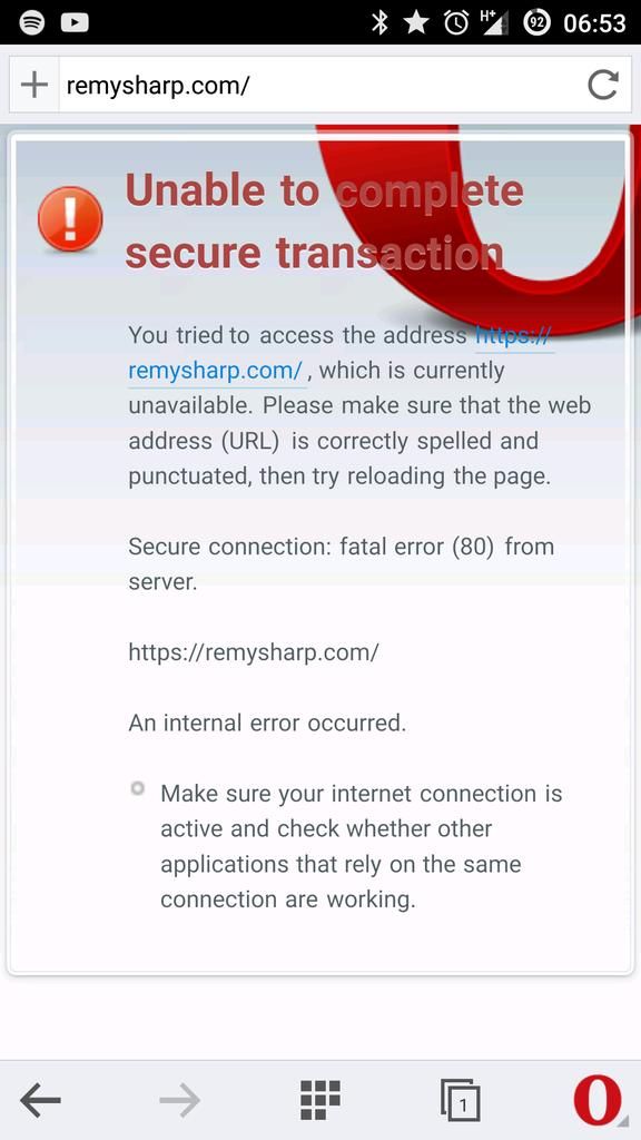 this isn't a great way to report bugs, but any idea why opera mini (new) is blocking my ssl? (Same over WiFi)