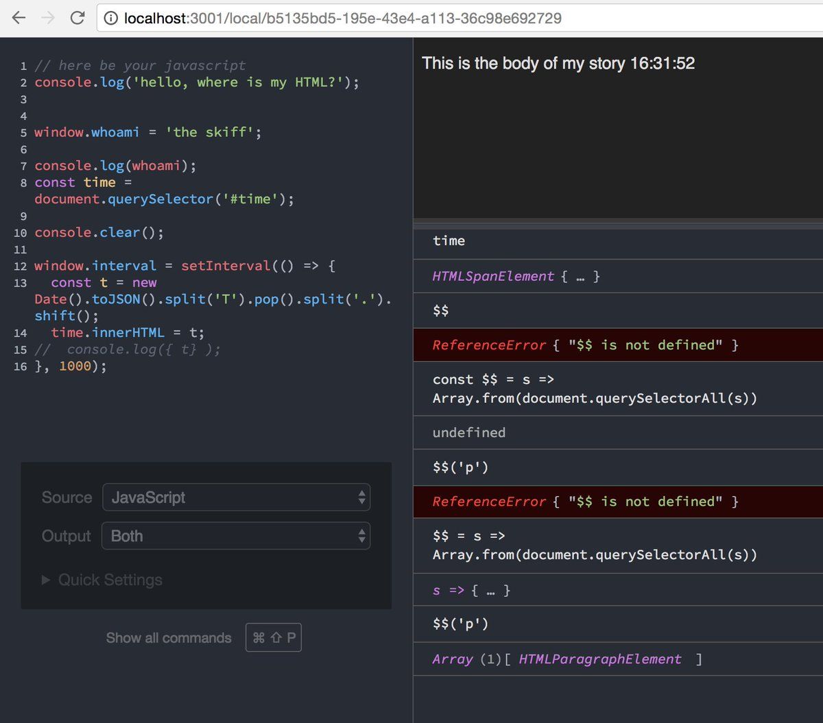 It's a start, and I spent most of my day just turning (new) jsconsole into a dual app/component, but it's getting there.