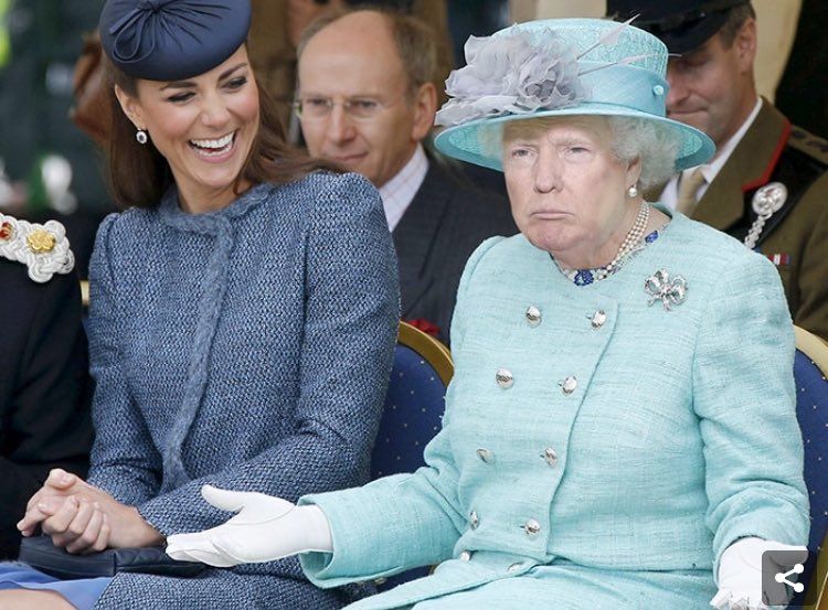 : Whoever keeps photoshopping Trumps face on the queen needs to stop! Dying 😂😂😂