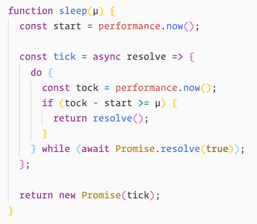 while (true)is fine here since I'm only expecting to sleep <100µs. Wouldn't particularly be inclined to use for fractions of ms.